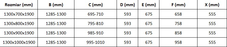 Inštalačný rozmer posuvných dverí do sprchového kúta je 1285-1300 mm. Samotné dvere, ktorými budete vchádzať do sprchy, majú 67,5 cm . Tie sa ale vďaka kovovému madlu nezasúvajú celé, takže vstup do sprchy budete mať 55,5 cm .