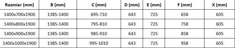 Inštalačný rozmer posuvných dverí do sprchového kúta je 1385-1400 mm. Samotné dvere, ktorými budete vchádzať do sprchy, majú 72,5 cm . Tie sa ale vďaka kovovému madlu nezasúvajú celé, takže vstup do sprchy budete mať 60,5 cm .
