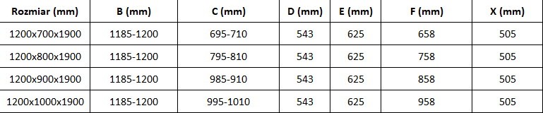 Inštalačný rozmer posuvných dverí do sprchového kúta je 1185-1200 mm. Samotné dvere, ktorými budete vchádzať do sprchy, majú 62,5 cm . Tie sa ale vďaka kovovému madlu nezasúvajú celé, takže vstup do sprchy budete mať 50,5 cm .