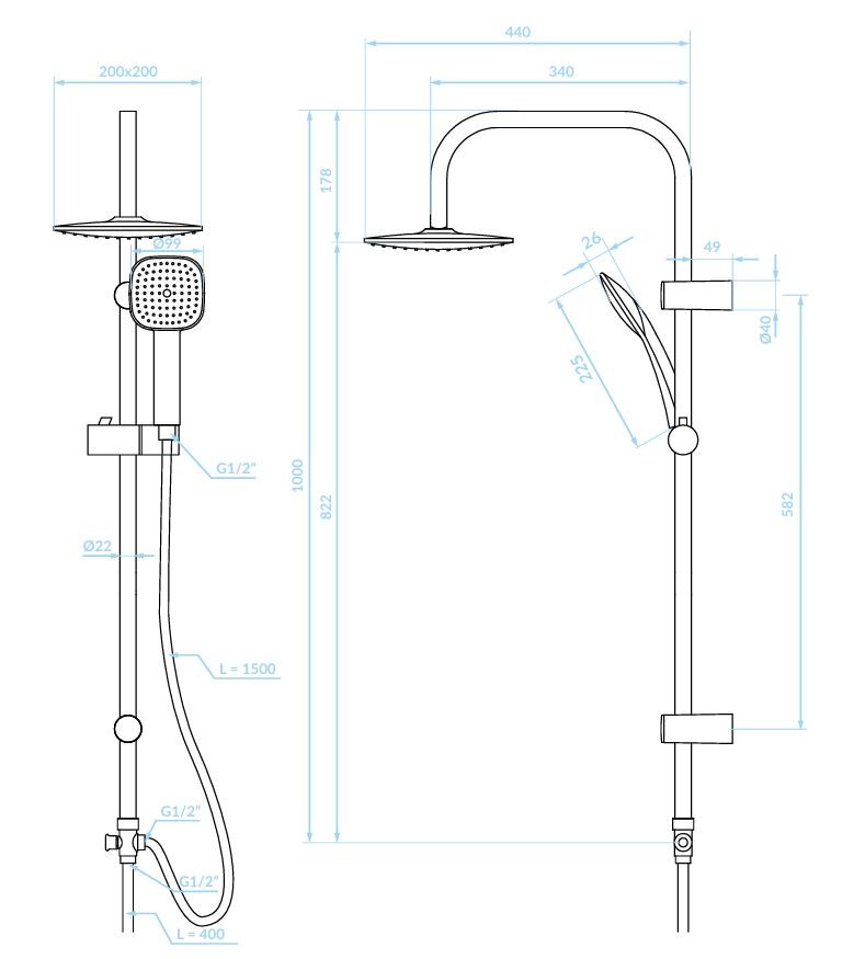 Na výber sú dve tvarové varianty – zaoblená a hranatá – a dve povrchové úpravy: elegantný chróm a moderná matná čierna . Vďaka tomu ľahko zladíte sprchový stĺp so štýlom ostatných kúpeľňových armatúr.