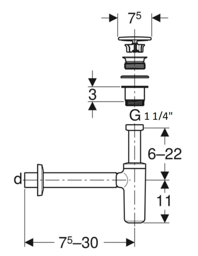 - pre umývadlá s priemerom odpadu 46 mm