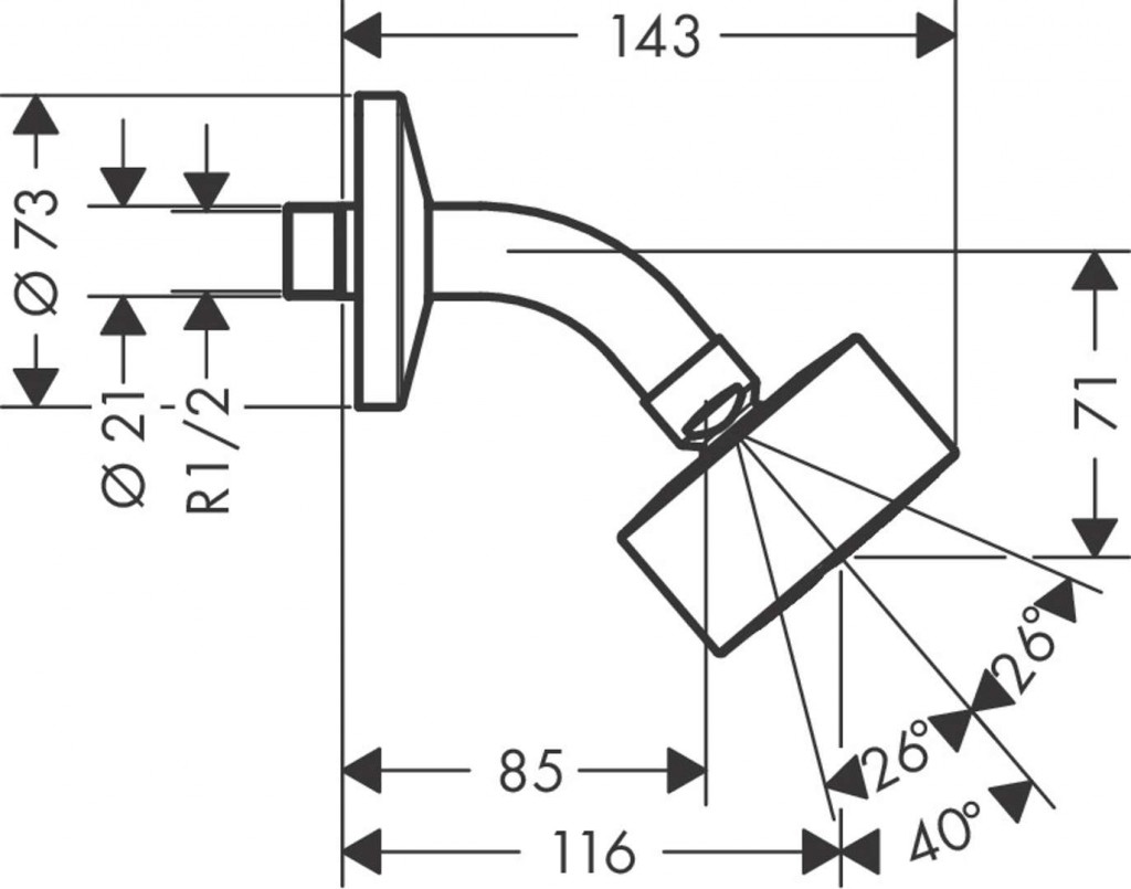 - guľový kĺb: nastaviteľný uhol hornej sprchy