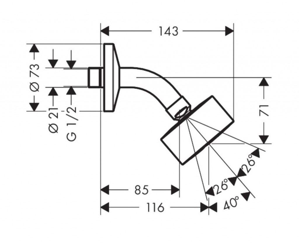 - dĺžka sprchového ramena: 85 mm