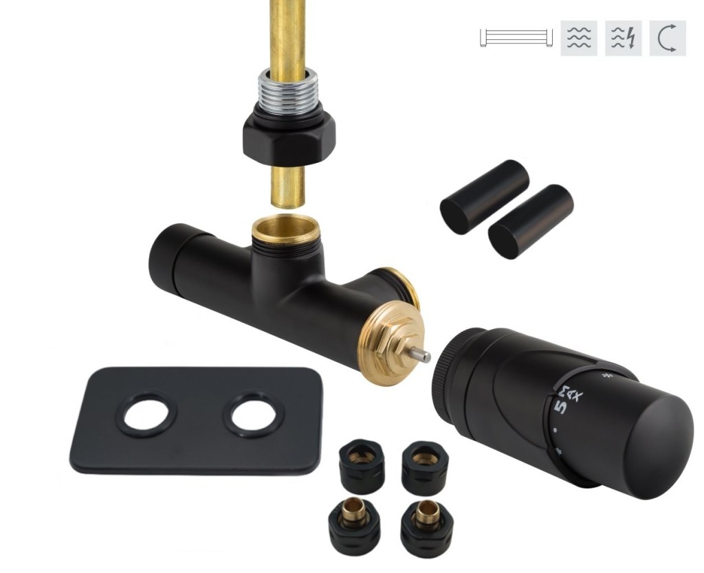 Jednobodová obojstranná (ľavá aj pravá) termostatická sada ONE vr. krycie rozety a 2 krycích trubičiek ( mosadz) je určená pre pripojenie radiátorov na rozvody TÚV s vývodom zo steny s rozstupom 50mm.