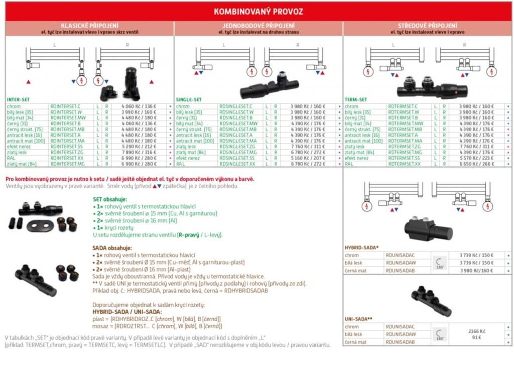 Pre kombinovanú prevádzku pri klasických radiátoroch musíte objednať sadu + el. tyč v odporúčanom výkone, ktorú môžete inštalovať vľavo alebo vpravo do radiátora.