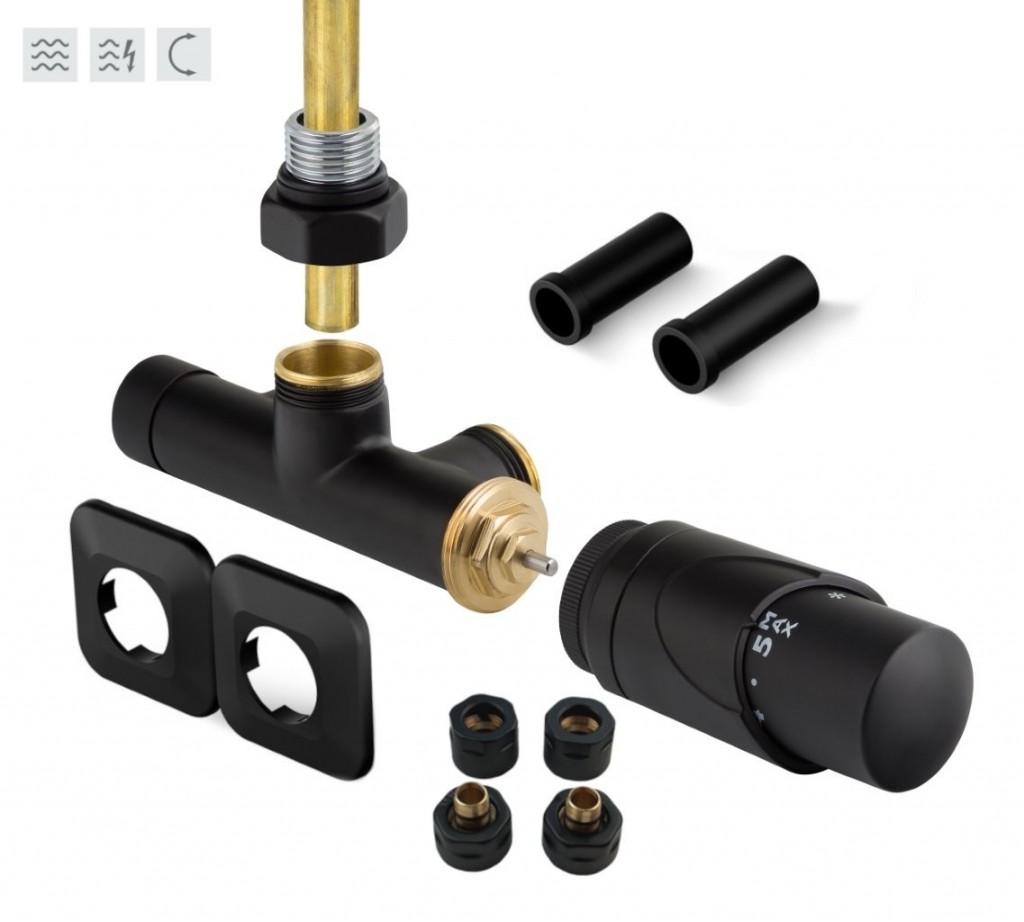 Jednobodová obojstranná (ľavá aj pravá) termostatická sada ONE vr. krycie rozety a 2 krycích trubičiek ( plast) je určená na pripojenie radiátorov na rozvody TÚV s vývodom zo steny s rozstupom 50mm.
