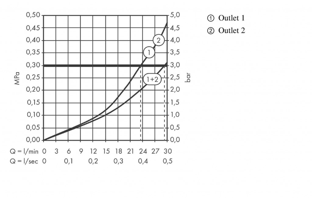 - prietok pri súčasnom použití všetkých spotrebičov: 30 l/min