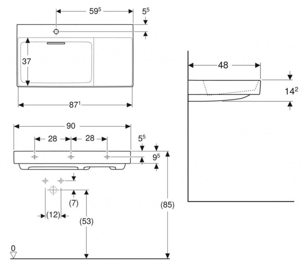 Umývadlo Geberit ONE s odkladacou plochou vpravo