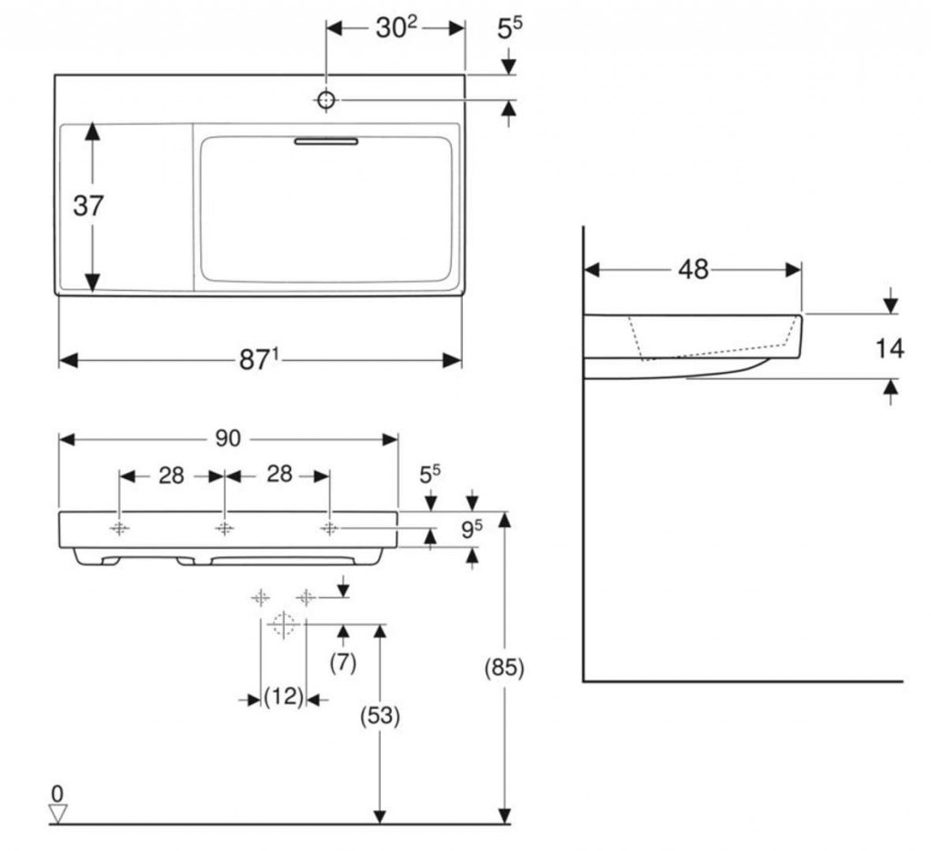 Umývadlo Geberit ONE s odkladacou plochou vľavo