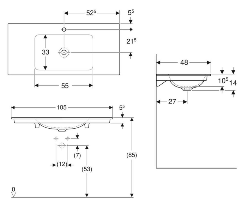 Nábytkové umývadlo, bez prepadu