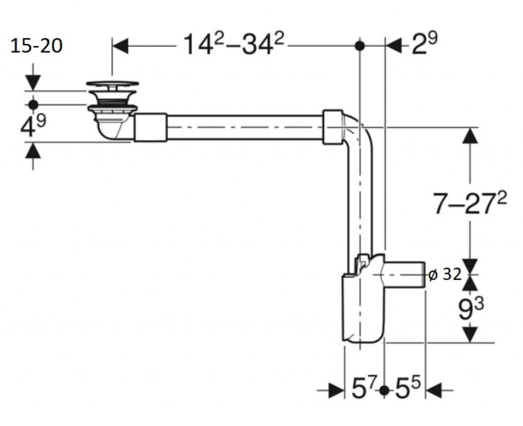 - pre umývadlá s hrúbkou materiálu 15–20 mm v oblasti odpadového ventilu