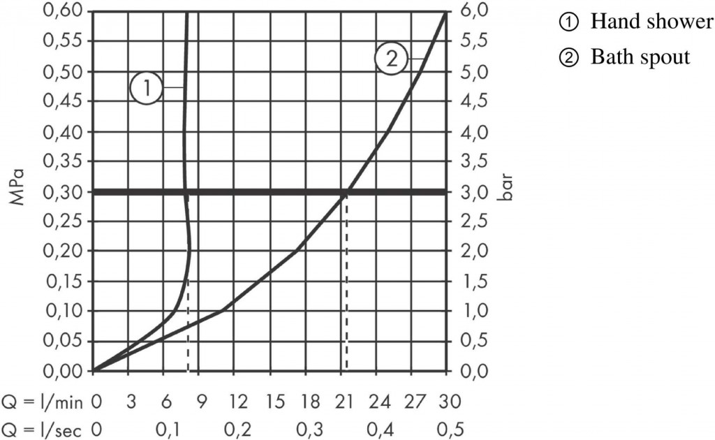 - prietok pre výtok vane pri 0,3 MPa 21,5 l/min