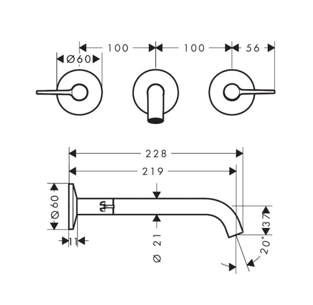 - dĺžka výtoku: 219 mm