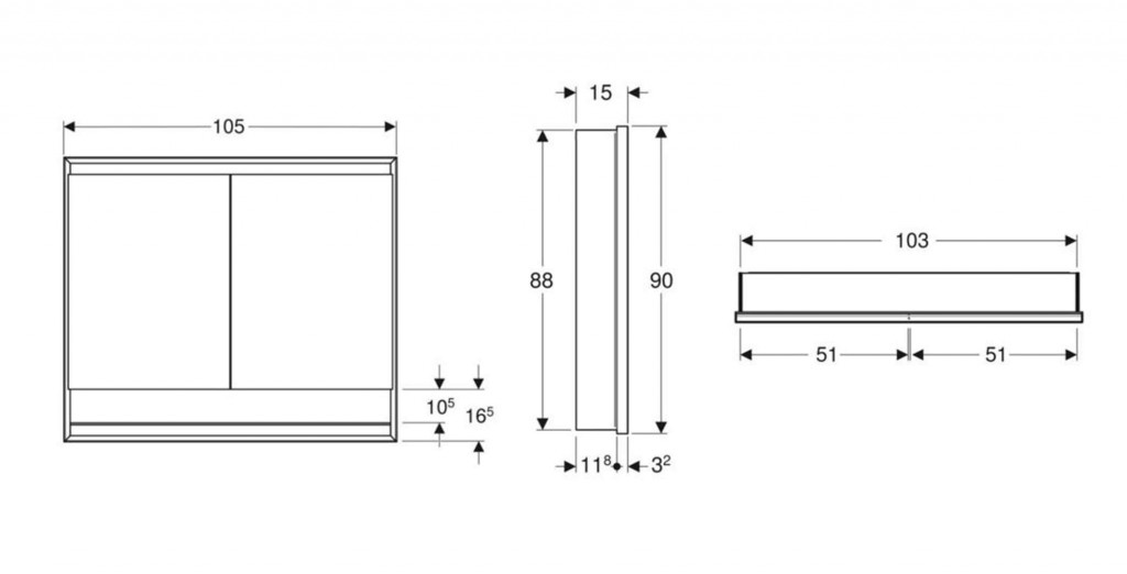 Montážny box pre zrkadlovú skrinku Geberit ONE, výška 90 cm nie je súčasťou balenia.