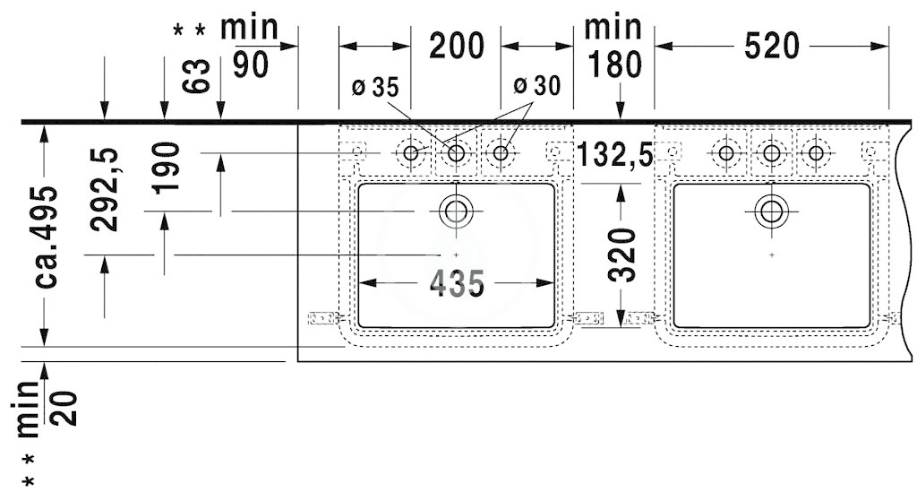 - pri umývadlách sa vzťahujú údaje o rozmeroch na rozmery vnútornej