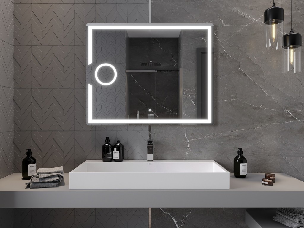 Moderné obdĺžnikové zrkadlo kolekcie ONYX je vybavené LED podsvietením, ktoré sa ľahko ovláda pomocou dotykového tlačidla priamo na ploche zrkadla . Zrkadlo je vybavené vyhrievacou podložkou ANTI-CAR , ktorá eliminuje zahmlenie skla.