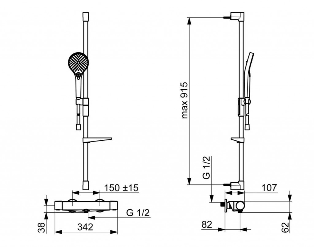 - s posuvným držiakom ručnej sprchy