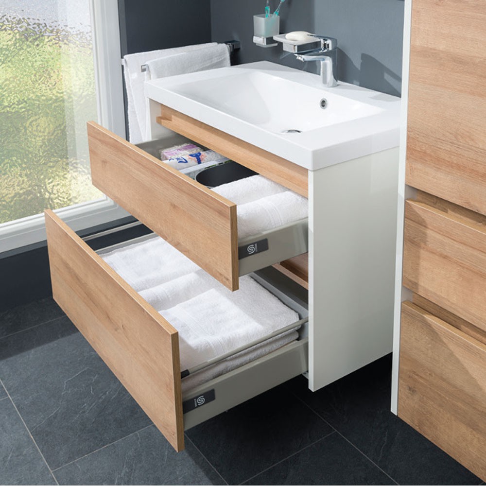 Séria kúpeľňového nábytku Opto umožňuje kombinovať skrinky do mnohých rôznych variant. Vytvorit ta ide ako zložité kombinácie do veľkých kúpeľní tak minimalistické riešenie v modernom dizajne. Zásuvky sú osadené značkovým kovaním Strong s pomalým dovieraním. Na výber sú tri farebné možnosti, biela lesk, dub Riviera a čierna supermat. Skrinky majú laserom opracované hrany a sú dodávané v zmontovanom stave. Skrinky sú určené na zavesenie.