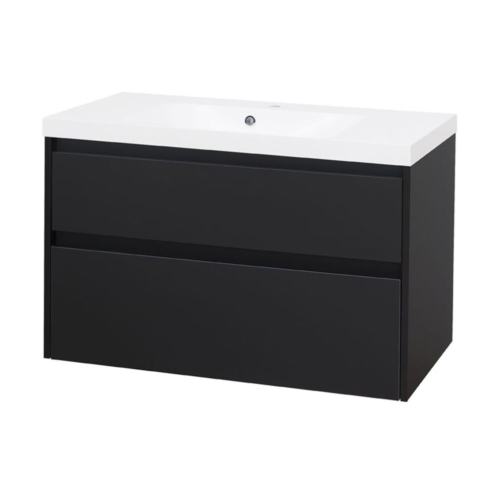 Mereo Opto, kúpeľňová skrinka s umývadlom z liateho mramoru 101 cm, čierna supermat (CN942M)