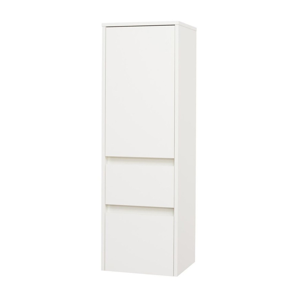 Jednoduchosť, efektívnosť, elegancia. To sú hlavné spoločné menovateľa kúpeľňového nábytku, ktorý ozdobí každú kúpeľňu. Hrany skriniek sú laserovo opracované. Skrinka obsahuje 2 zásuvky a dvierka za ktorými sa ukrývajú 2 police. Vyberať môžete z 2 typov otvárania (ľavé, pravé) a 3 farebných odtieňov: lesklá biela, dub Riviera a čierna supermat. Skrinka sa dodáva v zloženom stave.