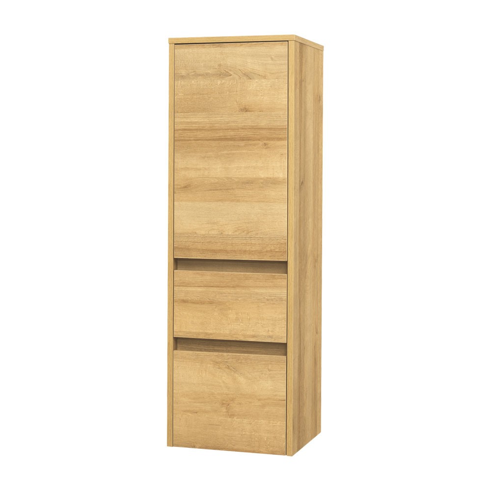 Jednoduchosť, efektívnosť, elegancia. To sú hlavné spoločné menovateľa kúpeľňového nábytku, ktorý ozdobí každú kúpeľňu. Hrany skriniek sú laserovo opracované. Skrinka obsahuje 2 zásuvky a dvierka za ktorými sa ukrývajú 2 police. Vyberať môžete z 2 typov otvárania (ľavé, pravé) a 3 farebných odtieňov: lesklá biela, dub Riviera a čierna supermat. Skrinka sa dodáva v zloženom stave.
