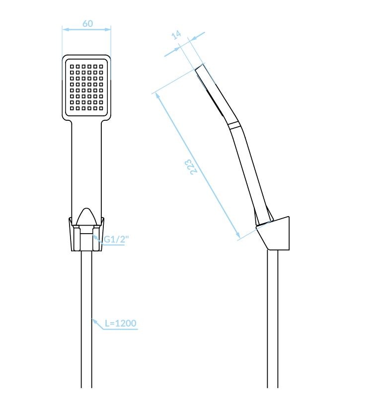 Hadica s dĺžkou 1200 mm zaisťuje dostatočný rozsah pohybu a jednoduchú manipuláciu, či už sprchu používate samostatne, alebo v kombinácii s držiakom.