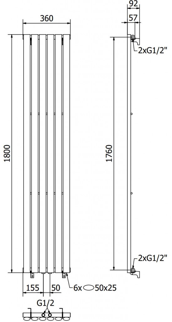 - 4x G ½″ z vrchnej a zo spodnej časti z pravej alebo ľavej strany
