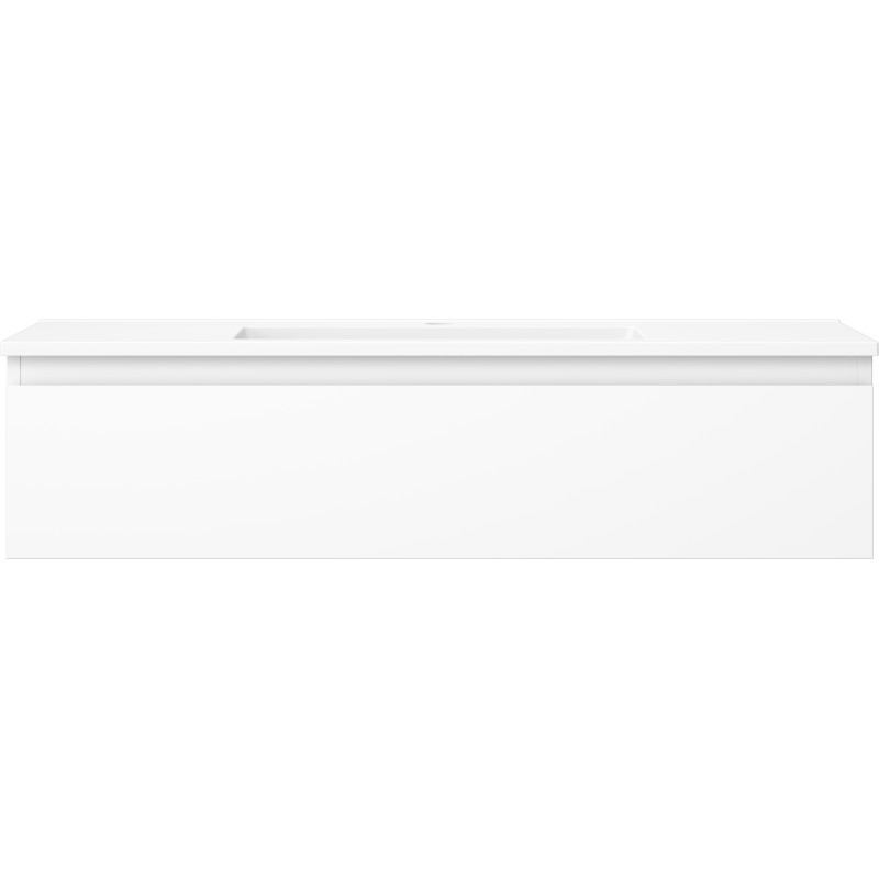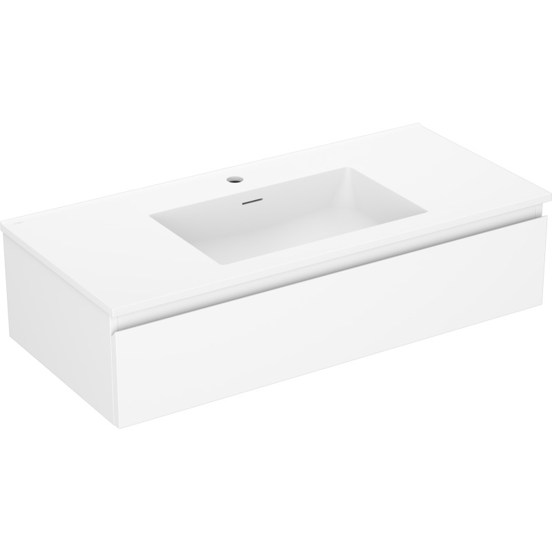Špecifikácia produktu: Rozmery skrinky: Šírka: 100 cm Hĺbka: 46 cm Výška: 23,5 cm Farba korpusu: Matná biela Materiál korpusu: Lakovaná doska Farba čela: Matná biela Materiál čela: Lakovaná MDF doska Štruktúra čela: Hladká Počet zásuviek: Povrch odolný voči UV žiareniu Rozmery umývadla: Šírka: 101 cm Hĺbka: 46,5 cm Výška: 16,5 cm Farba umývadla: Matná biela Materiál umývadla: Konglomerát Otvor pre prepad: Áno Otvor pre batériu: Áno Zmontovaný výrobok