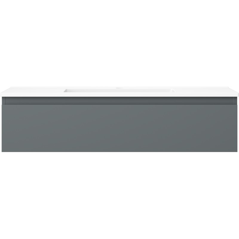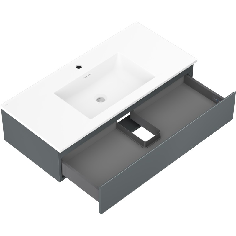 Špecifikácia produktu: Rozmery skrinky: Šírka: 100 cm Hĺbka: 46 cm Výška: 23,5 cm Farba korpusu: Matný grafit Materiál korpusu: Lakovaná doska Farba čela: Matný grafit Materiál čela: Lakovaná MDF doska Štruktúra čela: Hladká Počet zásuviek: Povrch odolný voči UV žiareniu Rozmery umývadla: Šírka: 101 cm Hĺbka: 46,5 cm Výška: 16,5 cm Farba umývadla: Matná biela Materiál umývadla: Konglomerát Otvor pre prepad: Áno Otvor pre batériu: Áno Zmontovaný výrobok
