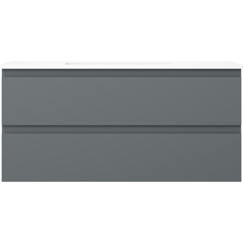 Špecifikácia produktu: Rozmery skrinky: Šírka: 100 cm Hĺbka: 46 cm Výška: 47 cm Farba korpusu: Matný grafit Materiál korpusu: Lakovaná doska Farba čela: Matný grafit Materiál čela: Lakovaná MDF doska Štruktúra čela: Hladká Počet zásuviek: 2 odolný voči UV žiareniu Rozmery umývadla: Šírka: 101 cm Hĺbka: 46,5 cm Výška: 16,5 cm Farba umývadla: Matná biela Materiál umývadla: Konglomerát Otvor pre prepad: Áno Otvor pre batériu: Áno Zmontovaný výrobok