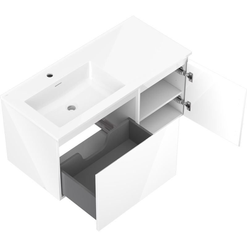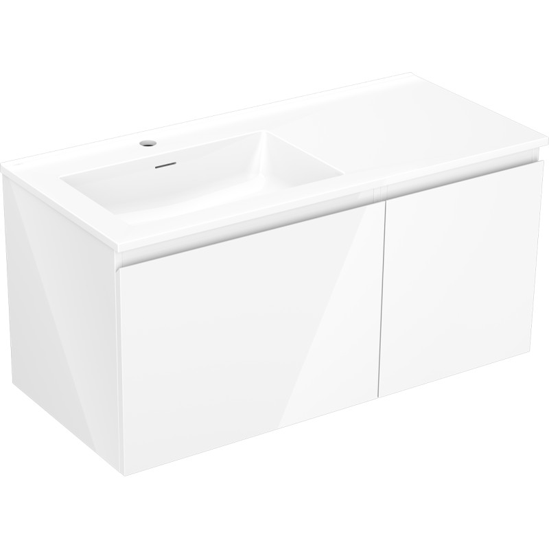 Špecifikácia produktu: Rozmery skrinky: Šírka: 100 cm Hĺbka: 46 cm Výška: 47 cm Sada obsahuje: Zásuvková skrinka pod umývadlo: Šírka: 60 cm Hĺbka: 46 cm Výška: 47 cm Farba korpusu: Biely lesk Materiál korpus čelá: Lakovaná MDF doska Konštrukcia čela: Hladká Počet zásuviek: 1 Priestranná zásuvka s funkciou tlmeného dovierania Umývadlová skrinka s dvierkami: Šírka: 40 cm Výška: 47 cm Hĺbka: 46 cm Farba korpusu: Biely lak lesk Materiál korpus čelá: Lakovaná MDF doska Konštrukcia čela: Hladká Počet dvierok: 1 1 polica Pánty s funkciou tlmeného dovierania Univerzálna montáž dvierok (ľavé/pravé) UV odolný povrch Umývadlo: Šírka: 101 cm Hĺbka: 46,5 cm Výška: 16,5 cm umývadlá: Konglomerát Otvor pre prepad: Áno Otvor pre batériu: Áno Zmontovaný výrobok