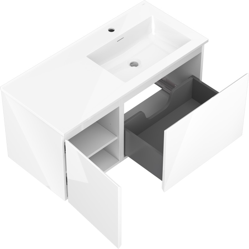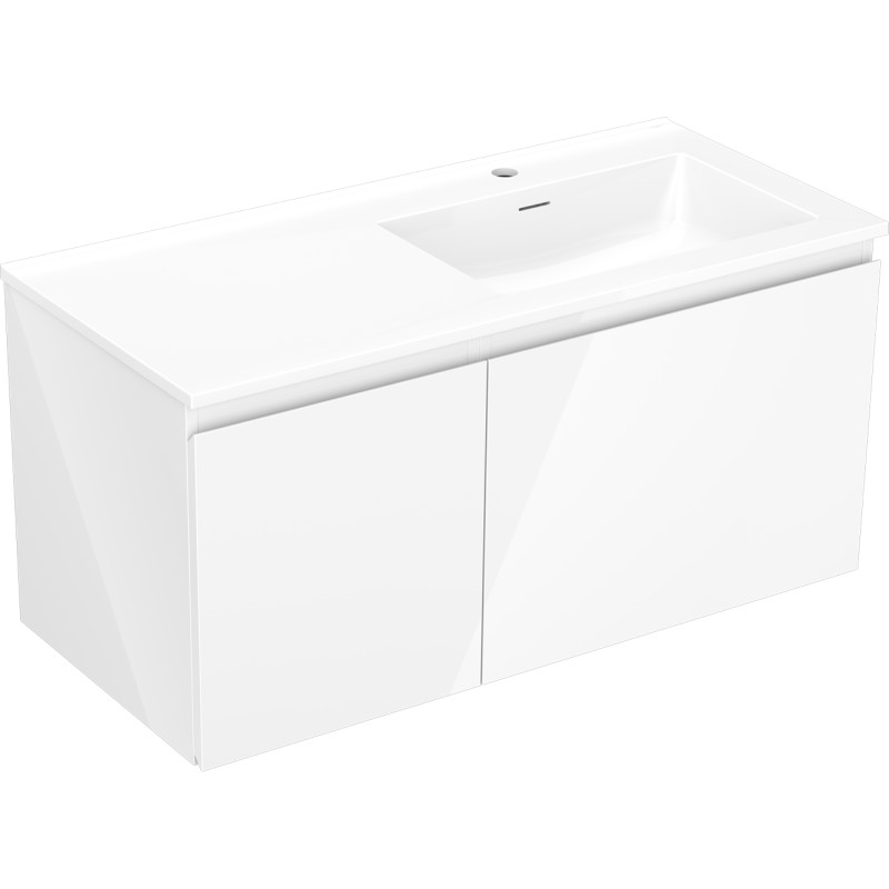 Špecifikácia produktu: Rozmery skrinky: Šírka: 100 cm Hĺbka: 46 cm Výška: 47 cm Sada obsahuje: Zásuvková skrinka pod umývadlo: Šírka: 60 cm Hĺbka: 46 cm Výška: 47 cm Farba korpusu: Biely lesk Materiál korpus čelá: Lakovaná MDF doska Konštrukcia čela: Hladká Počet zásuviek: 1 Priestranná zásuvka s funkciou tlmeného dovierania Umývadlová skrinka s dvierkami: Šírka: 40 cm Výška: 47 cm Hĺbka: 46 cm Farba korpusu: Biely lak lesk Materiál korpus čelá: Lakovaná MDF doska Konštrukcia čela: Hladká Počet dvierok: 1 1 polica Pánty s funkciou tlmeného dovierania Univerzálna montáž dvierok (ľavé/pravé) UV odolný povrch Umývadlo: Šírka: 101 cm Hĺbka: 46,5 cm Výška: 16,5 cm umývadlá: Konglomerát Otvor pre prepad: Áno Otvor pre batériu: Áno Zmontovaný výrobok