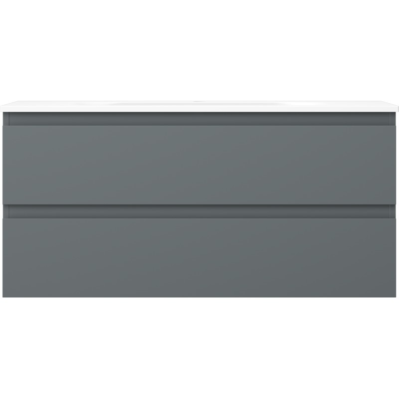 Špecifikácia produktu: Rozmery skrinky: Šírka: 100 cm Hĺbka: 46 cm Výška: 47 cm Farba korpusu: Matný grafit Materiál korpusu: Lakovaná doska Farba čela: Matný grafit Materiál čela: Lakovaná MDF doska Štruktúra čela: Hladká Počet zásuviek: 2 odolný voči UV žiareniu Rozmery umývadla: Šírka: 101 cm Hĺbka: 46,5 cm Výška: 16,5 cm Farba umývadla: Matná biela Materiál umývadla: Konglomerát Otvor pre prepad: Áno Otvor pre batériu: Áno Zmontovaný výrobok