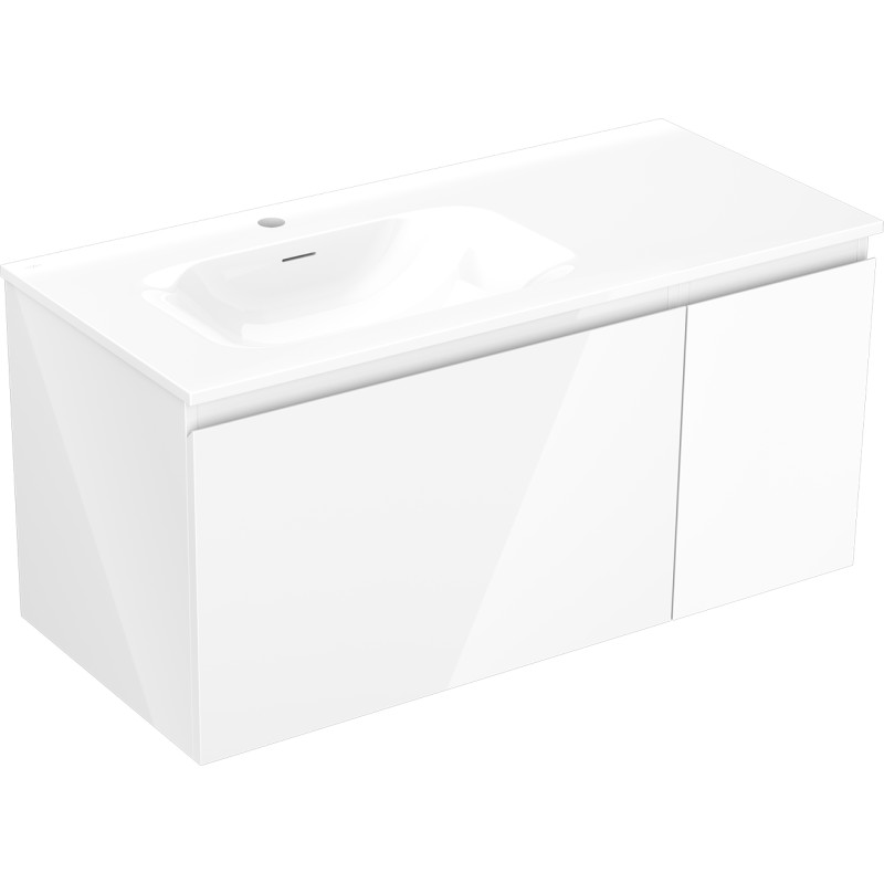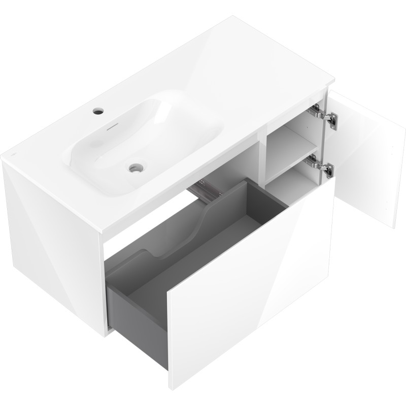 Špecifikácia produktu: Rozmery skrinky: Šírka: 100 cm Hĺbka: 46 cm Výška: 47 cm Sada obsahuje: Zásuvková skrinka pod umývadlo: Šírka: 70 cm Hĺbka: 46 cm Výška: 47 cm Farba korpusu: Biely lesk Materiál korpusu čela: Lakovaná MDF Štruktúra čela: Hladká Počet zásuviek: 1 Priestranná zásuvka s funkciou tlmeného dovierania Umývadlová skrinka s dvierkami: Šírka: 30 cm Výška: 47 cm Hĺbka: 46 cm Farba korpusu: Biely lesk Materiál korpusu: Lak Lakovaná MDF Štruktúra čela: Hladká Počet dvierok: 1 1 polica Pánty s funkciou tlmeného dovierania Univerzálna montáž dvierok (ľavé/pravé) UV odolný povrch Umývadlo: Šírka: 101 cm Hĺbka: 46,5 cm Výška: 16,5 cm Farba umývadla pre prepad: Áno Otvor pre batériu: Áno Zmontovaný výrobok