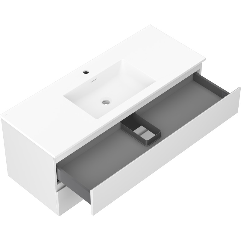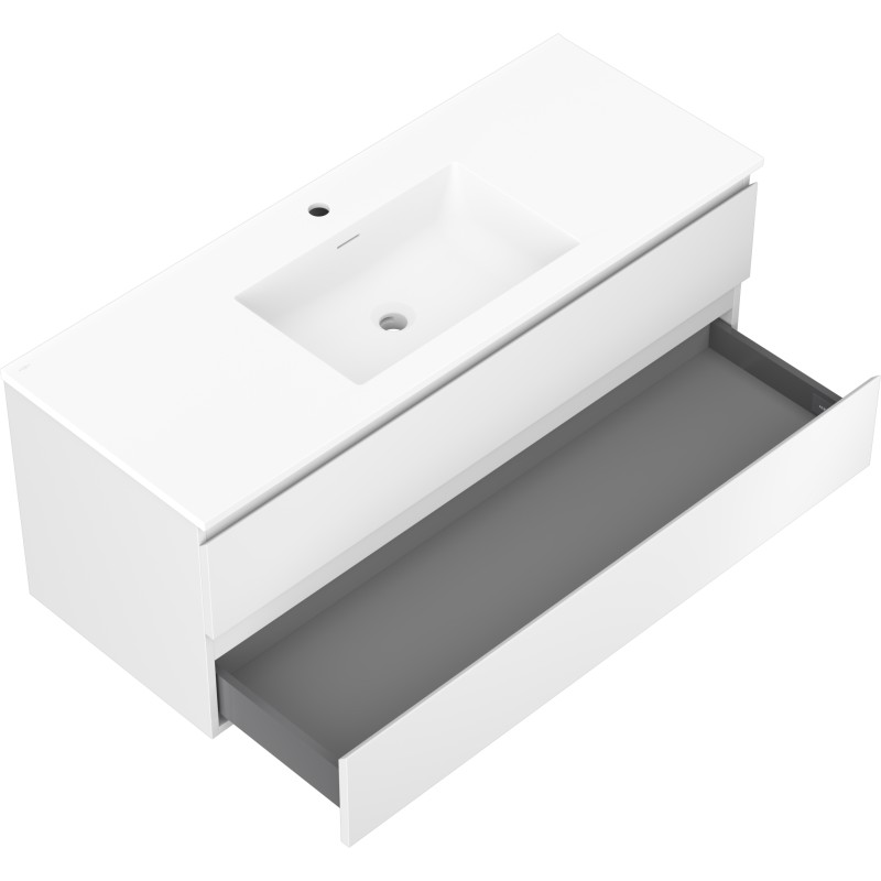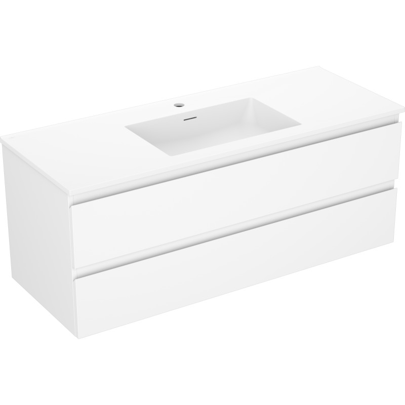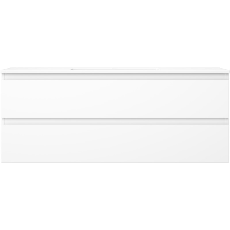 Špecifikácia produktu: Rozmery skrinky: Šírka: 120 cm Hĺbka: 46 cm Výška: 47 cm Farba korpusu: Matná biela Materiál korpusu: Lakovaná doska Farba čela: Matná biela Materiál čela: Lakovaná MDF doska Štruktúra čela: Hladká Počet zásuviek: 2 voči UV žiareniu Rozmery umývadla: Šírka: 121 cm Hĺbka: 46,5 cm Výška: 16,8 cm Farba umývadla: Matná biela Materiál umývadla: Konglomerát Otvor pre prepad: Áno Otvor pre batériu: Áno Zmontovaný výrobok