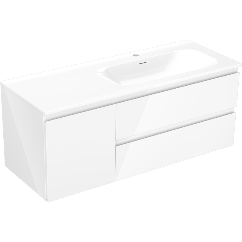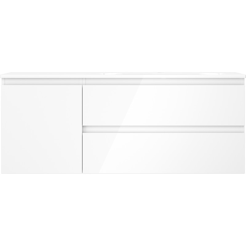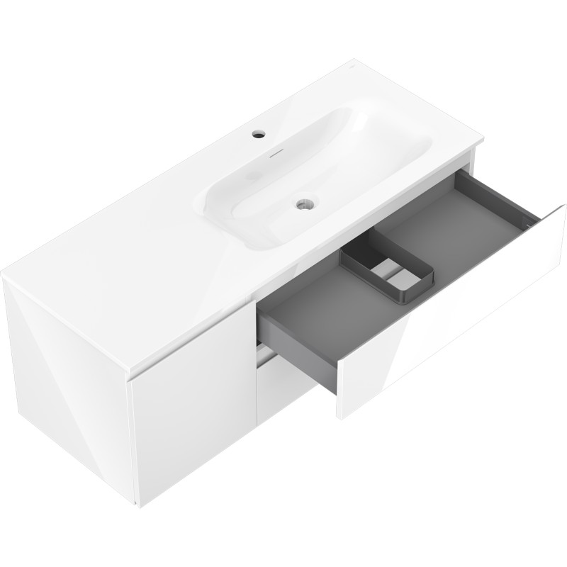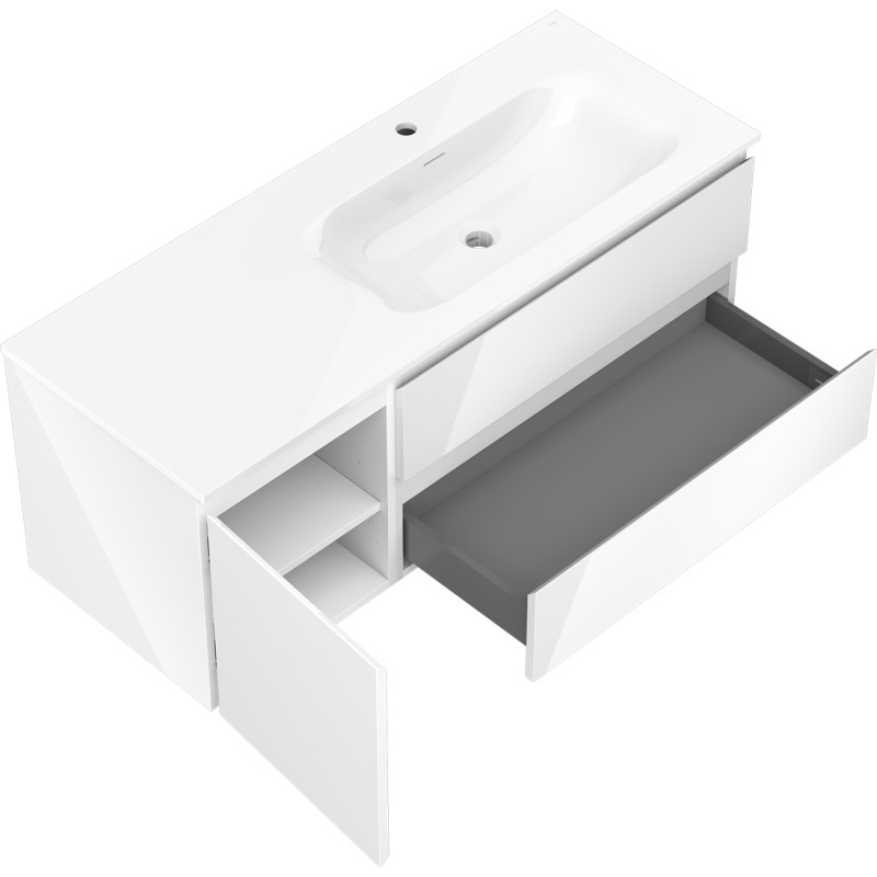 Špecifikácia produktu: Rozmery skrinky: Šírka: 120 cm Hĺbka: 46 cm Výška: 47 cm Sada obsahuje: Zásuvková skrinka pod umývadlo: Šírka: 80 cm Hĺbka: 46 cm Výška: 47 cm Farba korpusu: Biely lesk Materiál korpusu čela: Lakovaná MDF doska Konštrukcia čela: Hladká Počet zásuviek: 2 Priestranná zásuvka s funkciou tlmeného dovierania Povrch odolný voči UV žiareniu Skrinka pod umývadlo s dvierkami: Šírka: 40 cm Výška: 47 cm Hĺbka: 46 cm Farba lak čela: Biely lesk Materiál čela: Lakovaná MDF doska Konštrukcia čela: Hladká Počet dvierok: 1 1 polica Panty s funkciou tlmeného dovierania Univerzálna montáž dvierok (ľavé/pravé) Povrch odolný voči UV žiareniu Umývadlo: Šírka: 121 cm Hĺbka: 121 cm Hĺbka umývadlá: Lesklá biela Materiál umývadla: Konglomerát Otvor pre prepad: Áno Otvor pre batériu: Áno Zmontovaný výrobok
