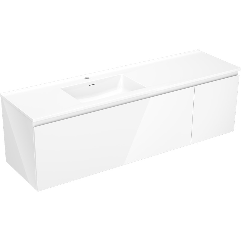 Špecifikácia produktu: Rozmery skrinky: Šírka: 160 cm Hĺbka: 46 cm Výška: 47 cm Sada obsahuje: Zásuvková skrinka pod umývadlo: Šírka: 120 cm Hĺbka: 46 cm Výška: 47 cm Farba korpusu Farba korpusu: Biely lesk Materiál korpus čelá: Lakovaná MDF doska Konštrukcia čela: Hladká Počet zásuviek: 1 Priestranná zásuvka s funkciou tlmeného dovierania Umývadlová skrinka s dvierkami: Šírka: 40 cm Výška: 47 cm Hĺbka: 46 cm Farba korpusu: Biely lak lesk Materiál korpus čelá: Lakovaná MDF doska Konštrukcia čela: Hladká Počet dvierok: 1 1 polica Pánty s funkciou tlmeného dovierania Univerzálna montáž dvierok (ľavé/pravé) UV odolný povrch Umývadlo: Šírka: 161 cm Hĺbka: 46,5 cm Výška: 16,5 cm umývadlá: Konglomerát Otvor pre prepad: Áno Otvor pre batériu: Áno Zmontovaný výrobok