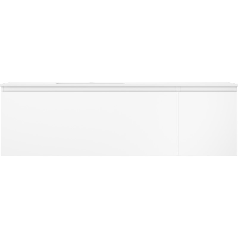 Špecifikácia produktu: Rozmery skrinky: Šírka: 160 cm Hĺbka: 46 cm Výška: 47 cm Sada obsahuje: Zásuvková skrinka pod umývadlo: Šírka: 120 cm Hĺbka: 46 cm Výška: 47 cm Farba korpusu Matná biela Materiál korpus čela: Lakovaná MDF doska Konštrukcia čela: Hladká Počet zásuviek: 1 Priestranná zásuvka s funkciou tlmeného dovierania Umývadlová skrinka s dvierkami: Šírka: 40 cm Výška: 47 cm Hĺbka: 46 cm Farba korpusu Matná biela Materiál korpus čelá: Lakovaná MDF doska Konštrukcia čela: Hladká Počet dvierok: 1 1 polica Pánty s funkciou tlmeného dovierania Univerzálna montáž dvierok (ľavé/pravé) Povrch odolný voči UV žiareniu Umývadlo: Šírka: 161 cm Hĺbka: 46,5 cm Výška: umývadlá: Konglomerát Otvor pre prepad: Áno Otvor pre batériu: Áno Produkt zmontovaný