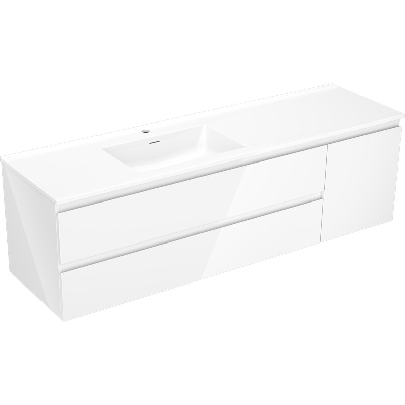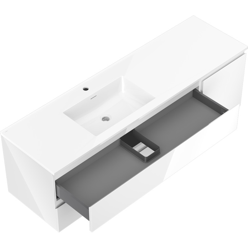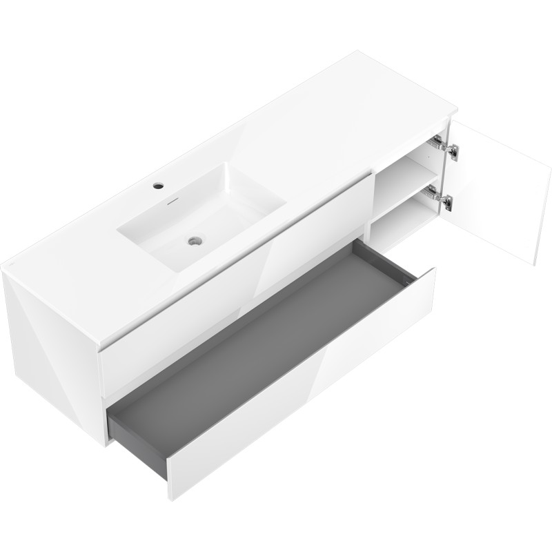 Špecifikácia produktu: Rozmery skrinky: Šírka: 160 cm Hĺbka: 46 cm Výška: 47 cm Sada obsahuje: Zásuvková skrinka pod umývadlo: Šírka: 120 cm Hĺbka: 46 cm Výška: 47 cm Farba korpusu Farba korpusu: Biely lesk Materiál korpus čela: Lakovaná MDF doska Štruktúra čela: Hladká Počet zásuviek: 2 Priestranná zásuvka s funkciou tlmeného dovierania Povrch odolný voči UV žiareniu Skrinka pod umývadlo s dvierkami: Šírka: 40 cm Výška: 47 cm Hĺbka: 46 cm Farba korpusu Farba korpusu čela: Biely lesk Materiál čela: Lakovaná MDF doska Štruktúra čela: Hladká Počet dvierok: 1 1 polica Panty s funkciou tlmeného dovierania Univerzálna montáž dvierok (ľavé/pravé) Povrch odolný voči UV žiareniu Umývadlo: Šírka: 161 cm Hĺbka: umývadlá: Lesklá biela Materiál umývadla: Konglomerát Otvor pre prepad: Áno Otvor pre batériu: Áno Zmontovaný produkt