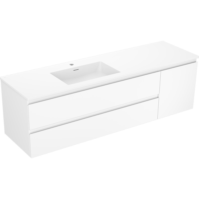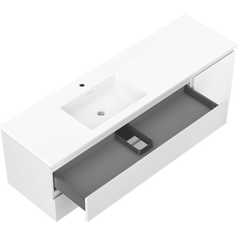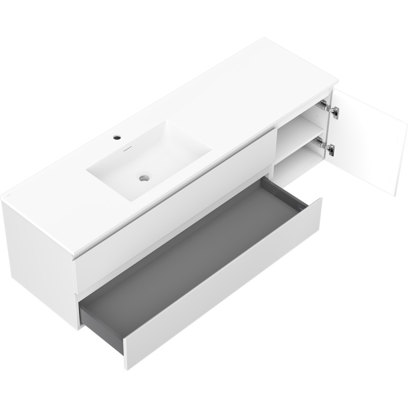 Špecifikácia produktu: Rozmery skrinky: Šírka: 160 cm Hĺbka: 46 cm Výška: 47 cm Sada obsahuje: Zásuvková skrinka pod umývadlo: Šírka: 120 cm Hĺbka: 46 cm Výška: 47 cm Farba korpusu Matná biela Materiál korpus čelá: Lakovaná MDF doska Konštrukcia čela: Hladká Počet zásuviek: 2 Priestranná zásuvka s funkciou tlmeného dovierania Umývadlová skrinka s dvierkami: Šírka: 40 cm Výška: 47 cm Hĺbka: 46 cm Farba korpusu Matná biela Materiál korpus čelá: Lakovaná MDF doska Konštrukcia čela: Hladká Počet dvierok: 1 1 polica Pánty s funkciou tlmeného dovierania Univerzálna montáž dvierok (ľavé/pravé) Povrch odolný voči UV žiareniu Umývadlo: Šírka: 161 cm Hĺbka: 46,5 cm Výška: umývadlá: Konglomerát Otvor pre prepad: Áno Otvor pre batériu: Áno Výrobok zmontovaný