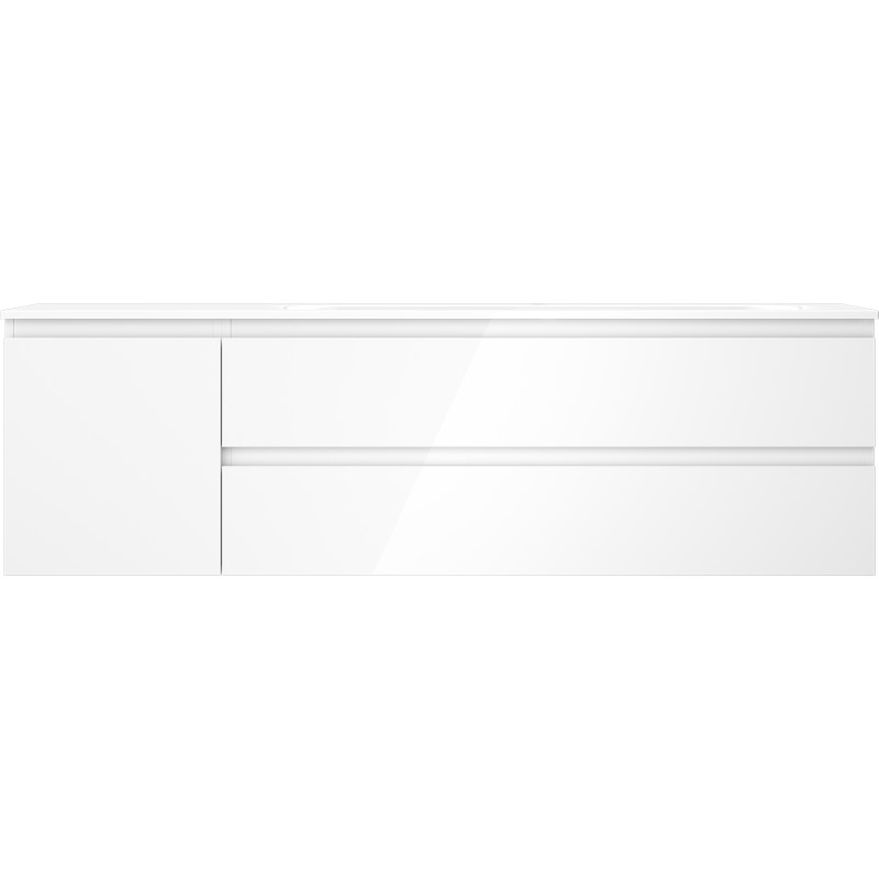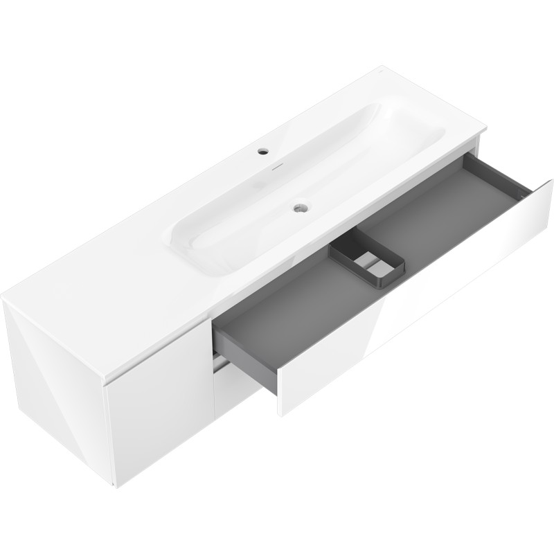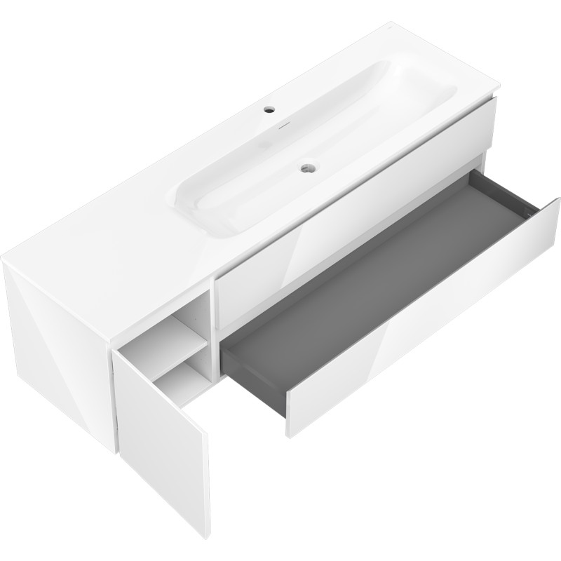 Špecifikácia produktu: Rozmery skrinky: Šírka: 160 cm Hĺbka: 46 cm Výška: 47 cm Sada obsahuje: Zásuvková skrinka pod umývadlo: Šírka: 120 cm Hĺbka: 46 cm Výška: 47 cm Farba korpusu Farba korpusu: Biely lesk Materiál korpus čela: Lakovaná MDF doska Štruktúra čela: Hladká Počet zásuviek: 2 Priestranná zásuvka s funkciou tlmeného dovierania Povrch odolný voči UV žiareniu Skrinka pod umývadlo s dvierkami: Šírka: 40 cm Výška: 47 cm Hĺbka: 46 cm Farba korpusu Farba korpusu čela: Biely lesk Materiál čela: Lakovaná MDF doska Štruktúra čela: Hladká Počet dvierok: 1 1 polica Pánty s funkciou tlmeného dovierania Univerzálna montáž dvierok (ľavé/pravé) Povrch odolný voči UV žiareniu Umývadlo: Šírka: 161 cm Hĺbka: umývadlá: Lesklá biela Materiál umývadla: Konglomerát Otvor pre prepad: Áno Otvor pre batériu: Áno Zmontovaný produkt