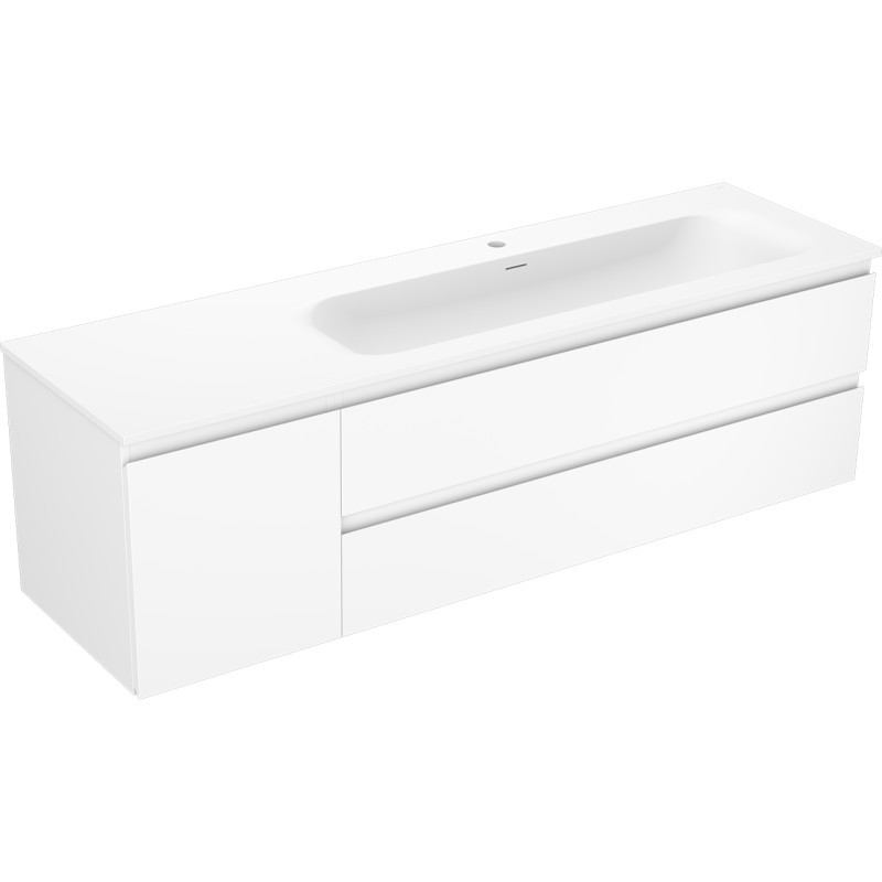 Špecifikácia produktu: Rozmery skrinky: Šírka: 160 cm Hĺbka: 46 cm Výška: 47 cm Sada obsahuje: Zásuvková skrinka pod umývadlo: Šírka: 120 cm Hĺbka: 46 cm Výška: 47 cm Farba korpusu Matná biela Materiál korpus čelá: Lakovaná MDF doska Konštrukcia čela: Hladká Počet zásuviek: 2 Priestranná zásuvka s funkciou tlmeného dovierania Umývadlová skrinka s dvierkami: Šírka: 40 cm Výška: 47 cm Hĺbka: 46 cm Farba korpusu Matná biela Materiál korpus čelá: Lakovaná MDF doska Konštrukcia čela: Hladká Počet dvierok: 1 1 polica Pánty s funkciou tlmeného dovierania Univerzálna montáž dvierok (ľavé/pravé) Povrch odolný voči UV žiareniu Umývadlo: Šírka: 161 cm Hĺbka: 46,5 cm Výška: umývadlá: Konglomerát Otvor pre prepad: Áno Otvor pre batériu: Áno Výrobok zmontovaný