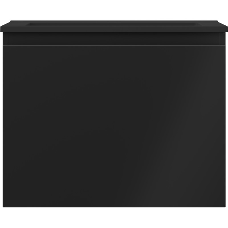 Špecifikácia produktu: Rozmery skrinky: Šírka: 60 cm Hĺbka: 46 cm Výška: 47 cm Farba korpusu: Matná čierna Materiál korpusu: Lakovaná doska Farba čela: Matná čierna Materiál čela: Lakovaná MDF doska Štruktúra čela: Hladká Počet zásuviek: 1 Priestranná zásuvka žiarenia Rozmery umývadla: Šírka: 61 cm Hĺbka: 46,5 cm Výška: 16,5 cm Farba umývadla: Matná čierna Materiál umývadla: Konglomerát Otvor pre prepad: Áno Otvor pre batériu: Áno Zmontovaný výrobok