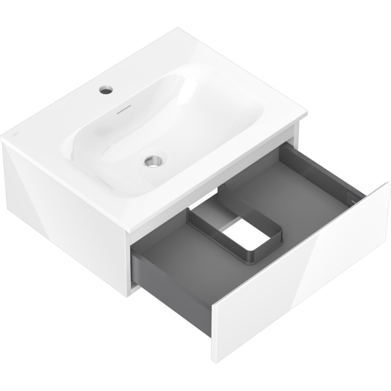 Špecifikácia produktu: Rozmery skrinky: Šírka: 60 cm Hĺbka: 46 cm Výška: 23,5 cm Farba korpusu: Lesklá biela Materiál korpusu: Lakovaná doska Farba čela: Lesklá biela Materiál čela: Lakovaná MDF doska Štruktúra čela: Hladká Počet zásuviek: odolný voči UV žiareniu Rozmery umývadla: Šírka: 61 cm Hĺbka: 46,5 cm Výška: 16,5 cm Farba umývadla: Lesklá biela Materiál umývadla: Konglomerát Otvor na prepad: Áno Otvor na batériu: Áno Zmontovaný výrobok