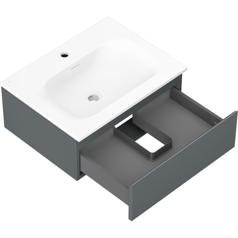 Špecifikácia produktu: Rozmery skrinky: Šírka: 60 cm Hĺbka: 46 cm Výška: 23,5 cm Farba korpusu: Matný grafit Materiál korpusu: Lakovaná doska Farba čela: Matný grafit Materiál čela: Lakovaná MDF doska Štruktúra čela: Hladká Počet zásuviek: Povrch odolný voči UV žiareniu Rozmery umývadla: Šírka: 61 cm Hĺbka: 46,5 cm Výška: 16,5 cm Farba umývadla: Matná biela Materiál umývadla: Konglomerát Otvor pre prepad: Áno Otvor pre batériu: Áno Zmontovaný výrobok