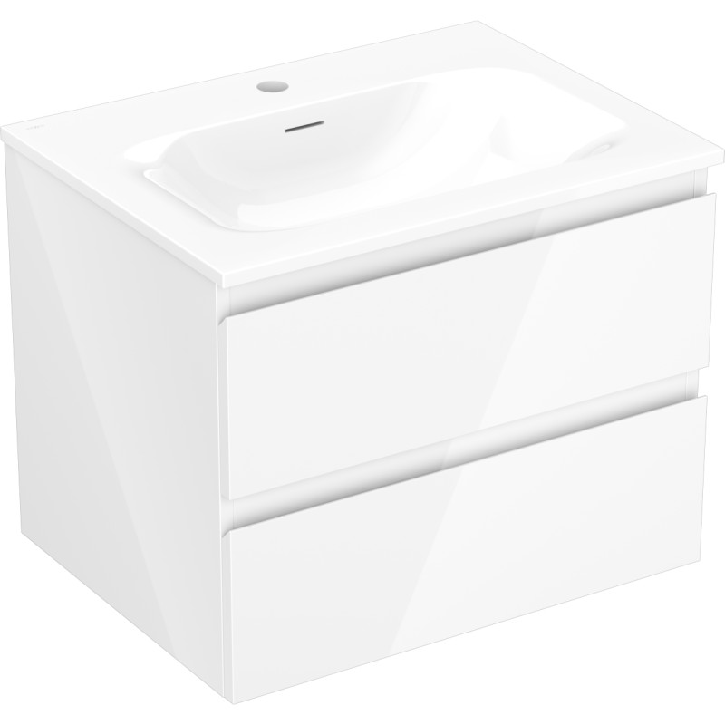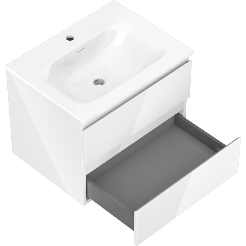 Špecifikácia produktu: Rozmery skrinky: Šírka: 60 cm Hĺbka: 46 cm Výška: 47 cm Farba korpusu: Lesklá biela Materiál korpusu: Lakovaná doska Farba čela: Lesklá biela Materiál čela: Lakovaná MDF doska Štruktúra čela: Hladká Počet zásuviek: 2 voči UV žiareniu Rozmery umývadla: Šírka: 61 cm Hĺbka: 46,5 cm Výška: 16,5 cm Farba umývadla: Lesklá biela Materiál umývadla: Konglomerát Otvor pre prepad: Áno Otvor pre batériu: Áno Zmontovaný výrobok