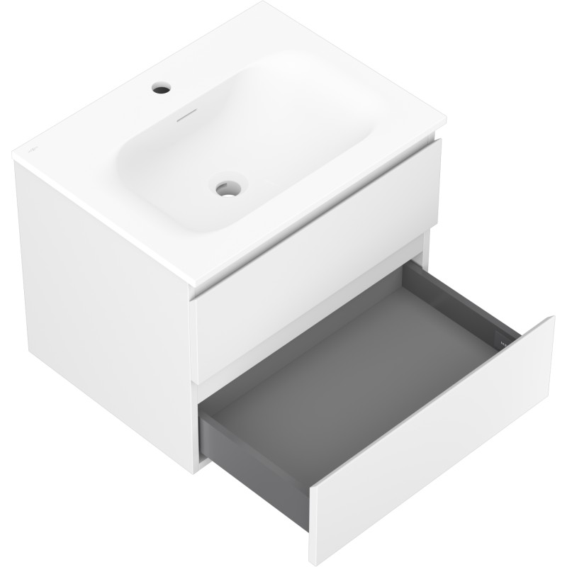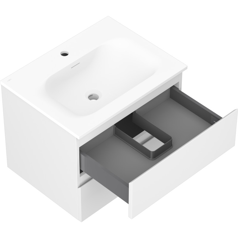 Špecifikácia produktu: Rozmery skrinky: Šírka: 60 cm Hĺbka: 46 cm Výška: 47 cm Farba korpusu: Matná biela Materiál korpusu: Lakovaná doska Farba čela: Matná biela Materiál čela: Lakovaná MDF doska Štruktúra čela: Hladká Počet zásuviek: 2 voči UV žiareniu Rozmery umývadla: Šírka: 61 cm Hĺbka: 46,5 cm Výška: 16,5 cm Farba umývadla: Matná biela Materiál umývadla: Konglomerát Otvor pre prepad: Áno Otvor pre batériu: Áno Zmontovaný výrobok