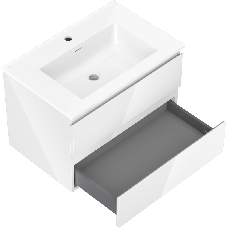 Špecifikácia produktu: Rozmery skrinky: Šírka: 70 cm Hĺbka: 46 cm Výška: 47 cm Farba korpusu: Lesklá biela Materiál korpusu: Lakovaná doska Farba čela: Lesklá biela Materiál čela: Lakovaná MDF doska Štruktúra čela: Hladká Počet zásuviek: 2 voči UV žiareniu Rozmery umývadla: Šírka: 71 cm Hĺbka: 46,5 cm Výška: 16,8 cm Farba umývadla: Lesklá biela Materiál umývadla: Konglomerát Otvor na prepad: Áno Otvor na batériu: Áno Zmontovaný výrobok