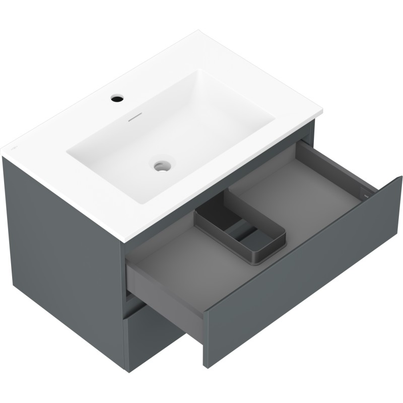 Špecifikácia produktu: Rozmery skrinky: Šírka: 70 cm Hĺbka: 46 cm Výška: 47 cm Farba korpusu: Matný grafit Materiál korpusu: Lakovaná doska Farba čela: Matný grafit Materiál čela: Lakovaná MDF doska Štruktúra čela: Hladká Počet zásuviek: 2 voči UV žiareniu Rozmery umývadla: Šírka: 71 cm Hĺbka: 46,5 cm Výška: 16,5 cm Farba umývadla: Matná biela Materiál umývadla: Konglomerát Otvor pre prepad: Áno Otvor pre batériu: Áno Zmontovaný výrobok