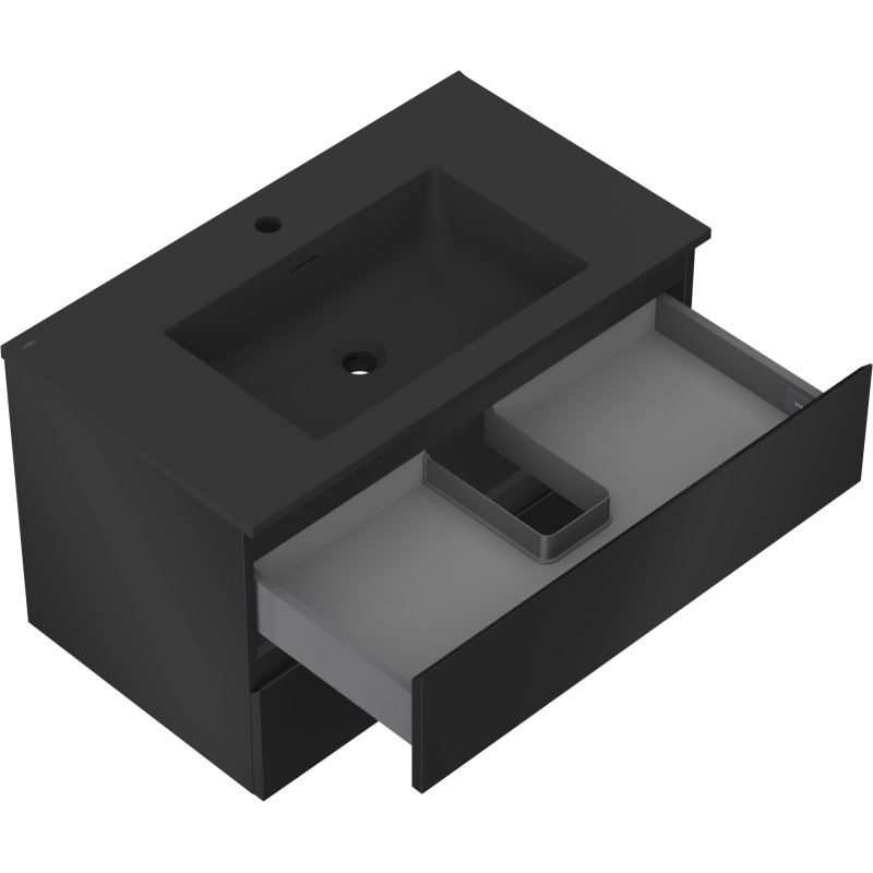 Špecifikácia produktu: Rozmery skrinky: Šírka: 80 cm Hĺbka: 46 cm Výška: 47 cm Farba korpusu: Matná čierna Materiál korpusu: Lakovaná doska Farba čela: Matná čierna Materiál čela: Lakovaná MDF doska Štruktúra čela: Hladká Počet zásuviek: 2 Priestranná zásuvka žiarenie Rozmery umývadla: Šírka: 81 cm Hĺbka: 46,5 cm Výška: 16,5 cm Farba umývadla: Matná čierna Materiál umývadla: Konglomerát Otvor pre prepad: Áno Otvor pre batériu: Áno Zmontovaný výrobok